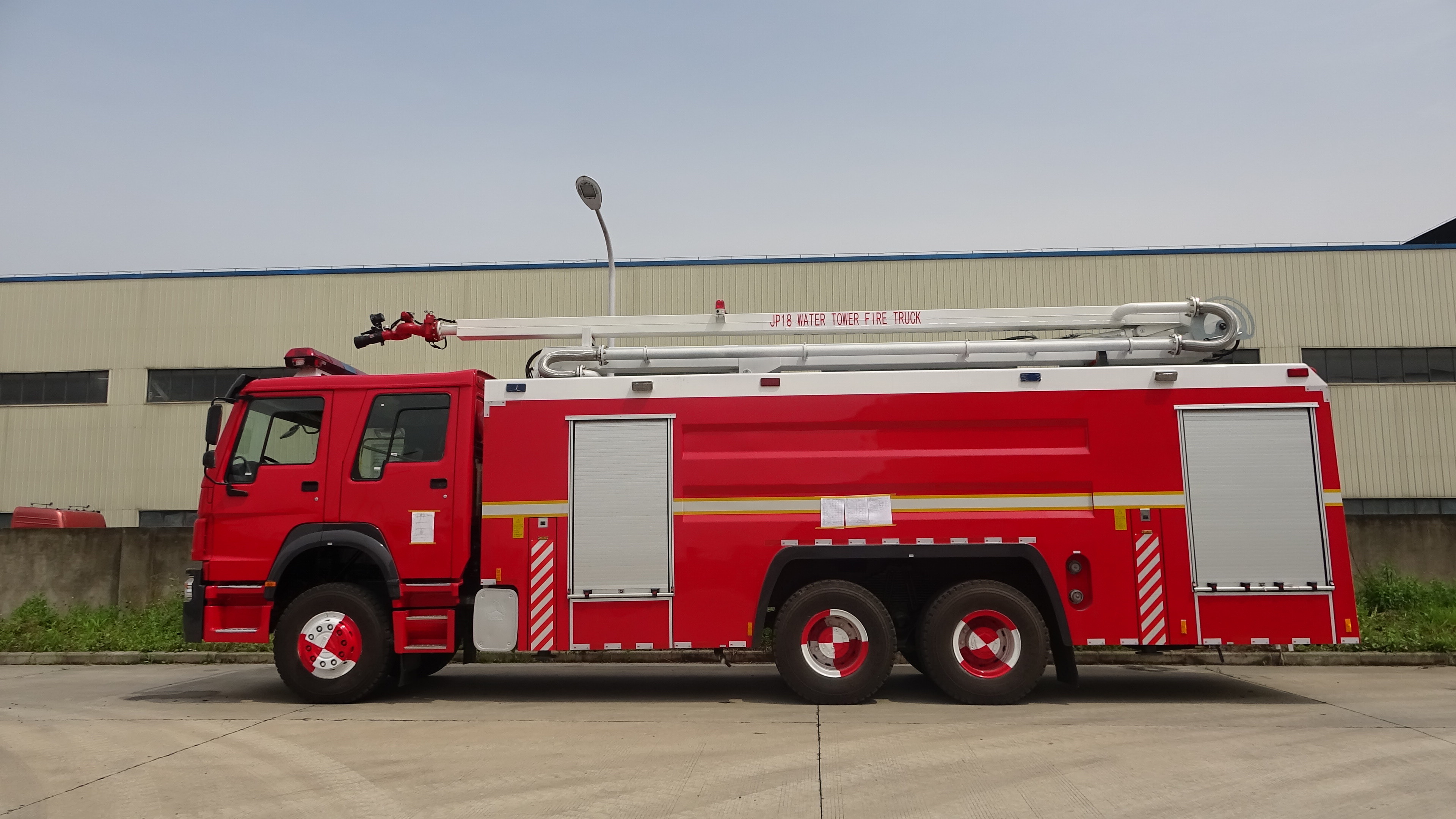 Dieses Fahrzeug besteht aus einem Fahrgestell, einem 18 m hohen Sprüharm, einer Feuerlöschpumpe, einem Löschmonitor und Gerätekästen.Das Feuerwehrauto des Wasserturms 18M hat eine starke Manövrierfähigkeit und Verkehrsfähigkeit, alle wichtigen elektronischen Steuerungskomponenten werden importiert, die sich durch hohe Zuverlässigkeit, lange Arbeitszeiten, einfache Wartung, gute Wirkung und so weiter auszeichnen.